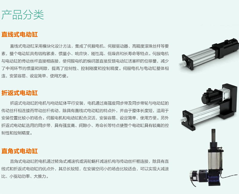 電動缸是電機正反轉通過絲杠和絲杠副的機械運動轉換為往返直線運動。利用伺服電機的閉環控制特點,很方便的實現對推力、速度和位置的精密控制;由于其控制、使用的方便性,將實現氣缸和液壓缸傳動所不能實現的精密運動控制